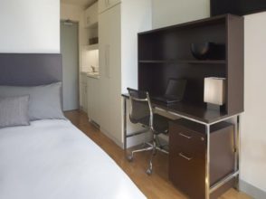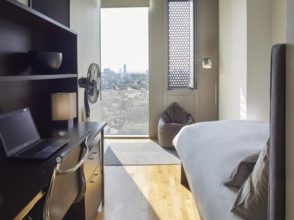 Modern residence ideally situated minutes walk from Kings Cross St Pancras station. Offers single and twin en-suite rooms, large communal areas with free access to the gym.
